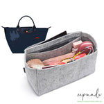• Longchamp bags of more than 35 cm in length, the felt purse organizer insert has a total of 12 pockets (7 interior pockets + 3 exterior pockets + 1 bottle holder + 1 tablet PC pocket).